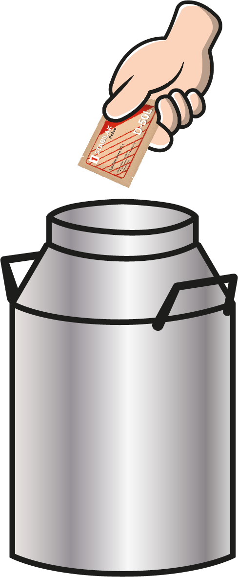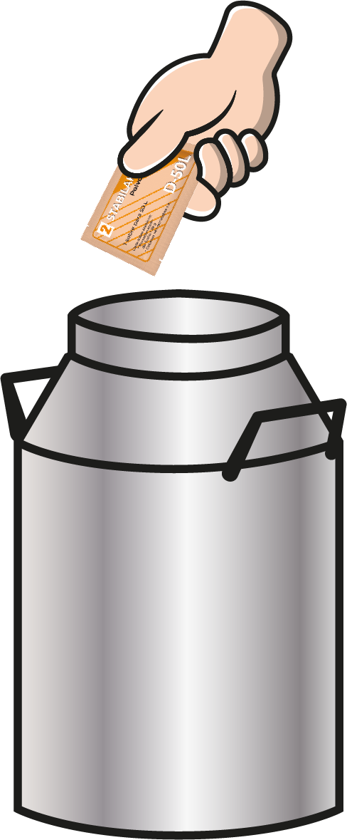 Ahora abra un sobre de STABILAK 2 y vierte el contenido en la leche.
